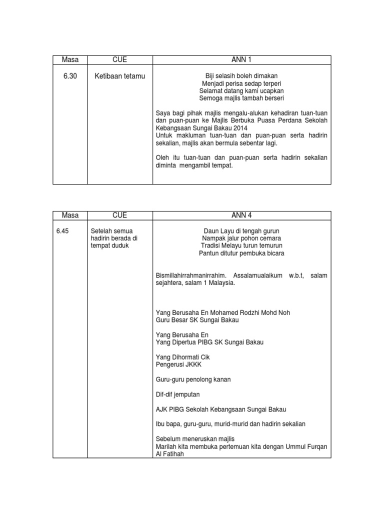 Pantun ini sangat cocok. Teks Ucapan Pengerusi Majlis Berbuka Puasa Teks Ucapan Majlis Berbuka Puasa Skpks 2010 Pdf Teks Ucapan Majlis Iftar Pdf Share this post. Have fun di dalam majlis tersebut untuk elakkan tekanan semasa mengacarakan majlis.